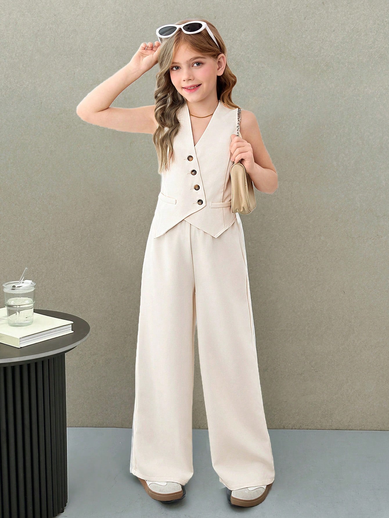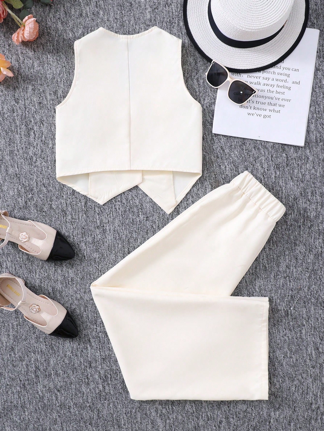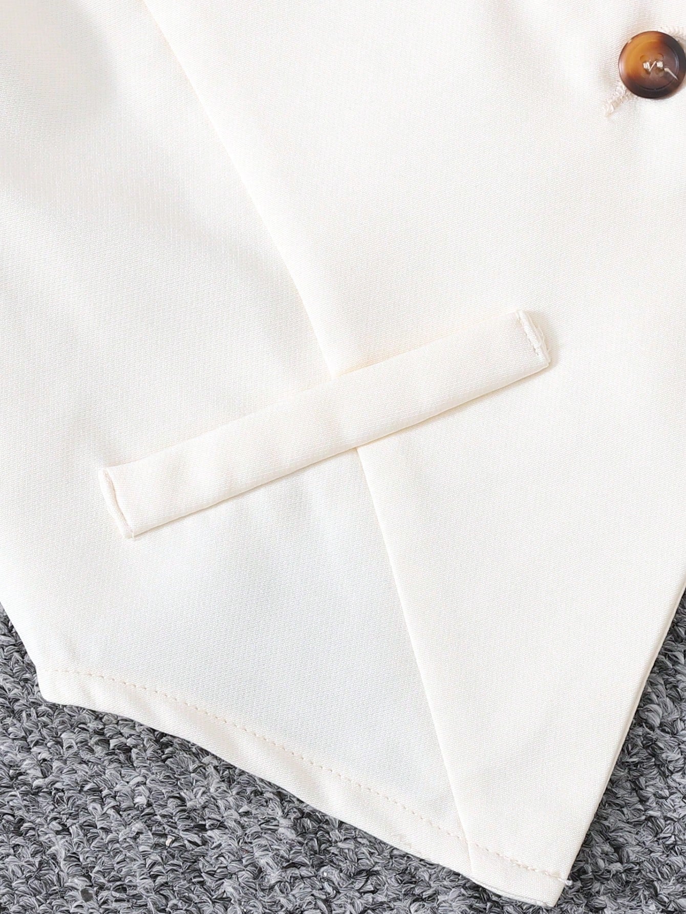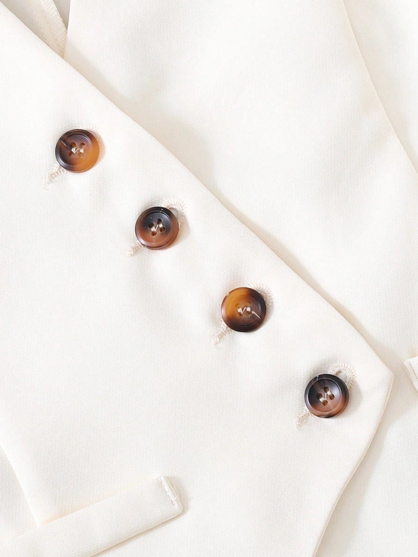 Tipo de Estampado : LisoPantalón Forro : Sin ForroColor : BeisEstilo : EleganteDetalles : Botón, Doble botonadura, BolsilloEscote : SolapaTipo de ajuste : RegularPantalón Longitud : LargoTops Longitud de la Manga : sin mangasTops Longitud : NormalPantalón Material : PoliésterPantalón&Tops Composición : 94% Poliéster,6% ElastanoInstrucciones de Cuidado : lavadora o limpieza en seco profesionalTransparente : NoTejido : No-ElásticoForrado Para Aportar Calidez : No