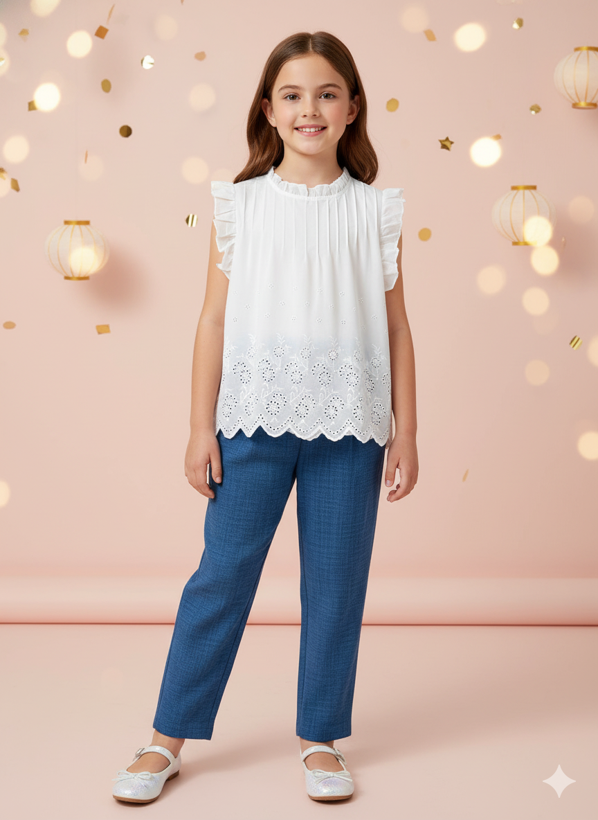 Detalles : Bordado, Cuello Volantes, Bordado de ojal