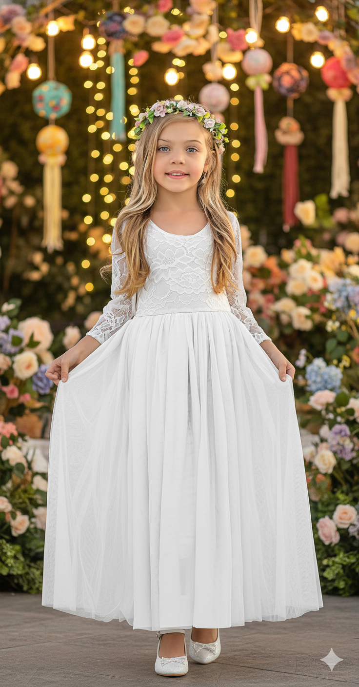 - Características: Nuestros vestidos de niña de flores están hechos con los mejores materiales y artesanía, asegurando que tu pequeña se vea y se sienta mejor mientras camina por el pasillo. Desde delicados detalles de encaje floral hasta tul suave y esponjoso, nuestros vestidos están diseñados para hacer una declaración y dejar una impresión duradera.