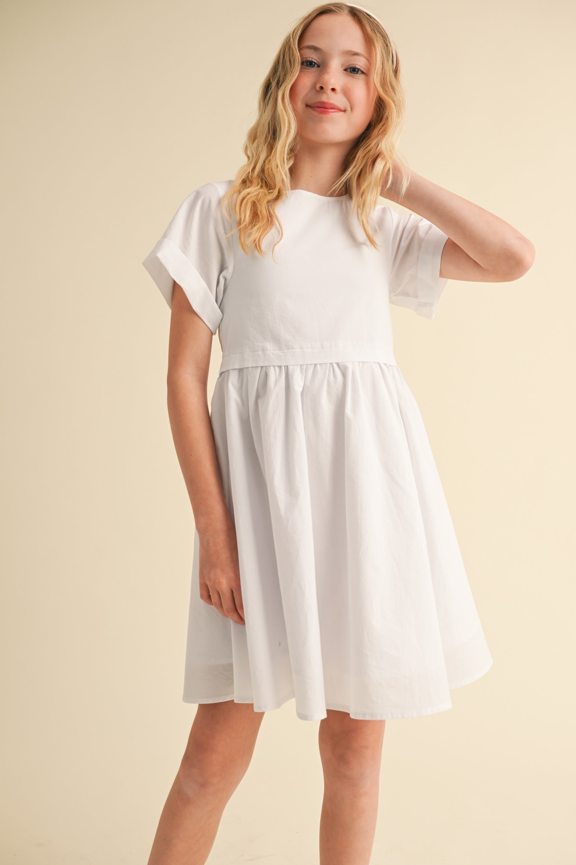 El escote redondo y las mangas cortas le dan un toque clásico,