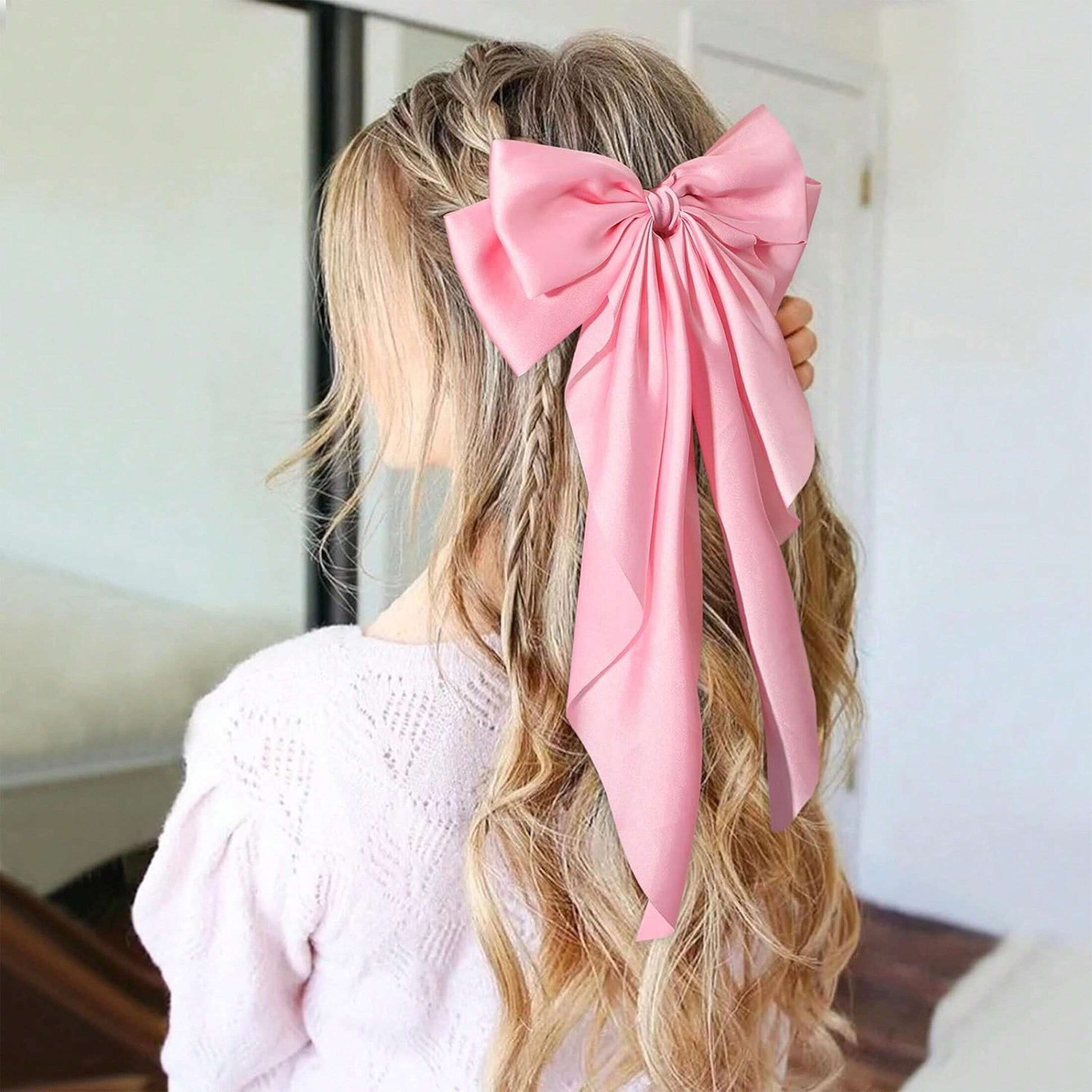 Tipo de Estampado : LisoColor : RosaDetalles : LazoEstilo : Casual, Dulce, GlamourGénero : ChicasFuente de alimentación : NingunoPilas Incluidas : NoTipo : Horquilla, ConjuntosEdad Aplicable : 14-16YComposición : 100% PoliésterMaterial : Satén